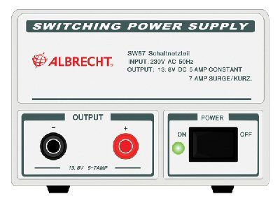 Switching Power Supply, Input 230 VAC, Output 13,8 VDC, 5-7 Ampere.